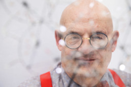 Biographie : « Depuis Léonard de Vinci la peinture s’est toujours considérée comme “cosa mentale”. Et cela en dépit de son aspect profondément artisanal. Au contraire, la sculpture semblait, de tous les arts, le plus définitivement liée à la matière. C’est ce que j’ai cru jusqu’à ce que l’informatique me montre la possibilité de travailler la lumière elle-même. Les nuances et les rythmes de la lumière sont – comme le son – en continuité directe avec les systèmes informatiques qui pilotent les enseignes ou les spectacles. L’esthétique si particulière de l’électronique : circuits labyrintiques et composants minuscules est toujours cachée aux regards. Télévision, téléphones pas plus que voitures ne laissent voir les composants qui les animent. Est-ce pour ne pas nous faire peur ? Les mécanismes minuscules où s’effectuent de fulgurants calculs restent toujours cachés. »